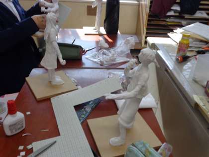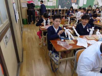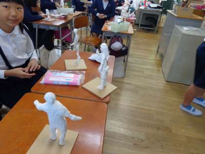 11月16日(木)〜18日(土)(18日は土曜参観、作品展)の作品展示に向けて、各学年では作製準備が進んでいますが、写真は6年生の図工です。針金を骨組みにして紙粘土で自分の好きな人物を上手に作製しています。これらは、すべて、子ども達の気持ちがいっぱいにこもったもので、世界に一つの貴重な作品になります。どうぞ、土曜参観の折にはご覧ください。