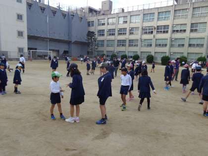 今日の児童集会は、集会委員が企画して、たてわり班でいろんな遊びを行いました。遊びは自分たちで決めました。縄跳びやボール遊び、じゃんけんで陣地を取るもの、「花いちもんめ」や「だるまさんがころんだ」をする班もありました。みんなとても楽しそうでした。見ている方も楽しくなりました。