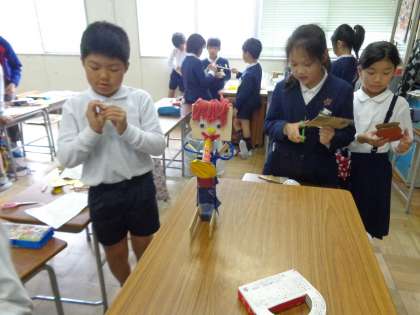 16日〜18日の展示会に向けて3年生が展示作品を一生懸命、作っています。それぞれの子ども達が一つずつの楽器と演奏者を分担して木工で作っています。これが、やがて学年分がすべて揃い、オーケストラになると思うと今からワクワクします。子ども達の夢の形を見に来てください!