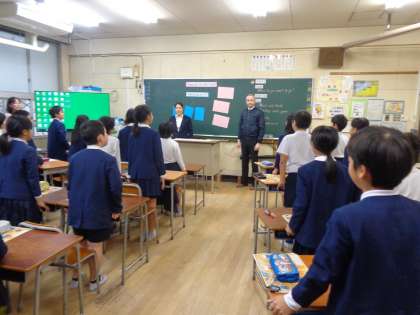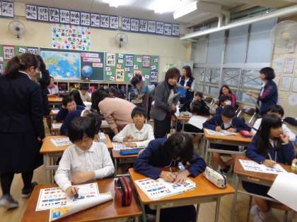 平成32年度から正式に、高学年では教科となり、中学年では外国語活動として履修することになる英語。本校では、先進的にその取り組みを進めていますが、本日も5年生で研究授業を実施し、その後には研究協議会を行いました。大学や教育委員会からも専門の先生をお招きしての非常に熱の入った取り組みです。これが、子ども達の国際的な感覚や理解力、交流能力を高めていくことと期待しています。