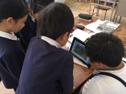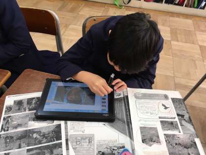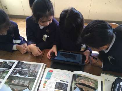 国語の教科書、人をつつむ形の学習を終えて、世界の家を調べてタブレットの発表ノートのアプリでまとめていきます。