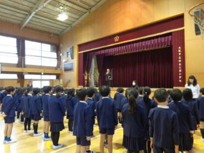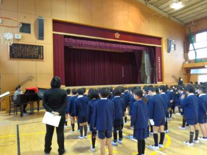 本日、子ども達のかわいい元気な笑顔が学校に帰ってきました!いよいよ3学期の開始です。始業式もきっちり話が聞けて、とても良い雰囲気でした。また、校歌もしっかり声を出して歌っています。この様子なら、来年度に向けて、子ども達はますます成長してくれると期待できます!