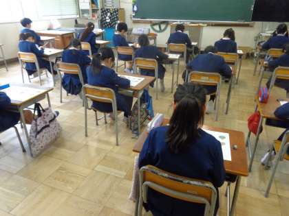今日の5時間目、3〜6年生は、英検Jrを実施しました。この試験は英語検定試験(英検)の児童版です。児童がチャレンジしたのはブロンズ級とシルバー級です。試験はリスニングを行い、答えを選択する形式です。みんな集中して聞き取っています。