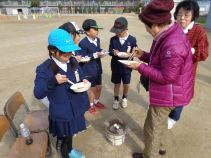 3年生は、地域の友和会の皆さんと、「昔の暮らし」を学習しました。七輪を使って、お餅を焼くことを教わりました。今、いろんなことが便利になっています。レンジやオーブンがなかったら、どうやって火を焚いて、調理するかを教わりました。寒い中でしたが、丁寧に指導していただき、焼きあがったお餅をみなさんと一緒に食べると、身も心も温かくなりました。友和会の皆様には、ご準備からいろいろとお世話になりまして、ありがとうございました。