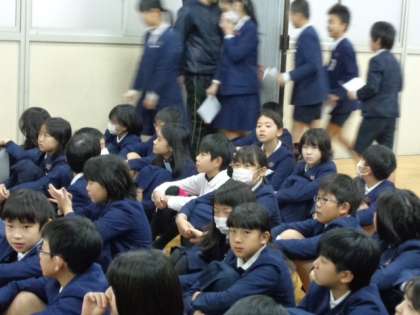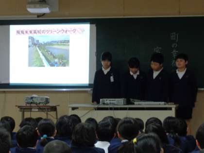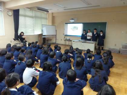 本日の1・2時間目には、5・6年生が、国語科の『町の幸福論』の内容を深めるため、素晴らしい町にするためにどうすればよいかの考察発表を行いました。6年生は、遊び場の確保やゴミのない美しい町づくり・・・など各班で様々な発表をしました。5年生は、それに対して感じたことや考えたことを感想として発表しました。淀川区役所の街づくり推進室から宮脇先生をお招きしましたが、子ども達の発表の頑張りやレベルの高さを誉めてくださいました。