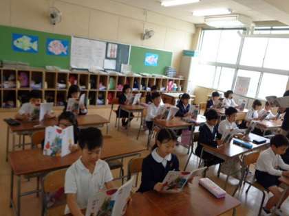 2年生の国語の授業風景です。まずは、国語、そしてすべての学習の基本である、きっちり読んで、きっちり書く練習にとても熱心に取り組んでいます。これらのことが、しっかりできると、すべての学習の基本が整ったことになります。みなさん、がんばってください!!