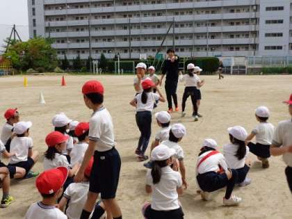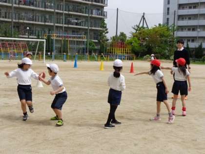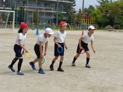 本日の3年生の体育はリレーに取り組んでいました。元気なみんなは走っているだけでも楽しそうですが、各チームに分かれ、リングをバトン代わりにリレーをすると、さらに盛り上がっていました。日本がオリンピックで2回もメダルをとったリレー競技です。みなさんも未来のオリンピアンかもしれませんね!!