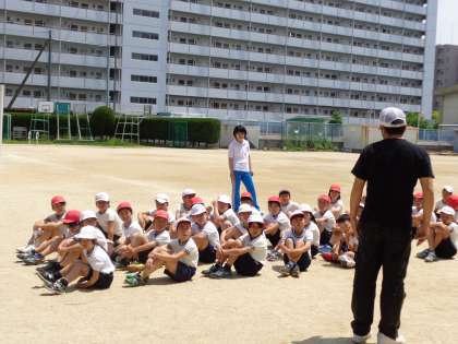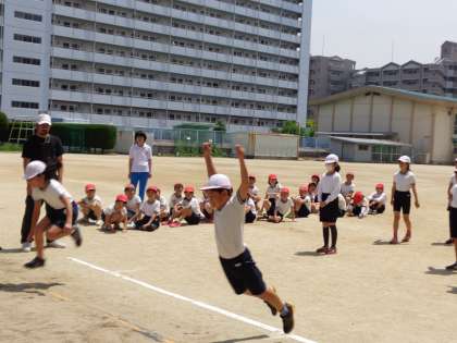 本日の4年生の体育の授業は砂場で幅跳びを行いました。準備体操が終わったあと、順番に跳んでいきますが、計測も自分たちで行います。こういった授業の進め方の中で、お互いの協力する気持ちが高くなっていきます。