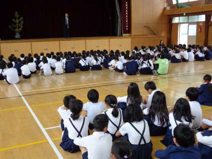 学校が子ども達にとって、安全で安心な学習の場であるために、大阪市では各学校でゴールデンウィーク明けに“いじめについて考える日”を設けることとしていますが、本日、本校では全校集会や各教室で、「決して許されないいじめ」について、みんなで考え、気持ちを1つにしました。一人一人が「いじめはいけないこと」の意識を持つと共に、「いじめを許さない」同じ気持ちで学級、学年、学校の仲間づくりを行っていく決心ができたと考えています。