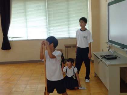 東三国中学校では、本日と明日に職場体験学習をしています。本校にも、本校の卒業生の男子生徒4名が来ています。子ども達と一緒に、いろんな活動をしていますが、4人とも、とても優しく接してくれて、しっかり“良いお兄さん”になっていました。
