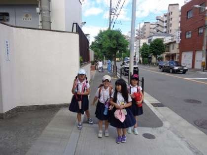 今日も一日、勉強に運動に、そして友達との遊びにがんばりました。子ども達は下校でもキラキラした様子を見せてくれています。暑いけど、時々吹く涼しい風が気持ちいい日でした。今日の出来事をお家の人たちと楽しくお話して、明日また元気に登校してくださいね!