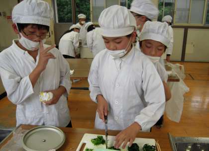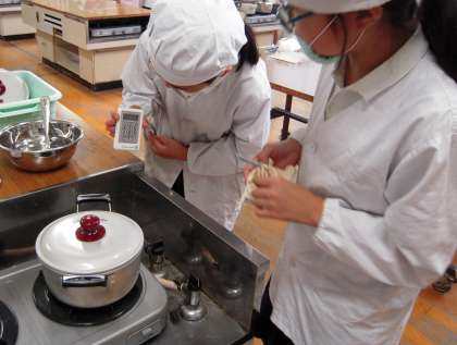 7月5日(木)、5年生が家庭科<ゆでてみよう>の学習で卵やほうれん草をゆでました。包丁やまな板を使ったり、コンロで湯を沸かしたりしての本格的調理です。