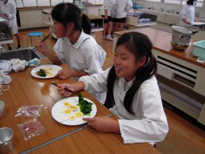 各班とも、上手に固ゆで卵ができました。また、ゆでたほうれん草はゴマやカツオ、しょう油でおいしくいただきました。