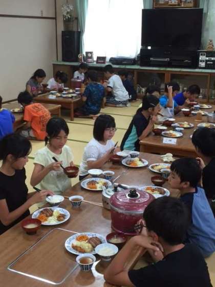 2日目の晩ごはんは、ますます、子どもたちの食欲をアップさせています。本当に楽しそうなひと時です!