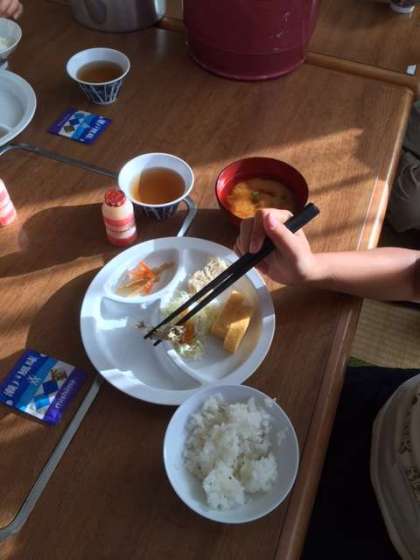 最終日の朝ごはん。しっかり食べて、キレイな自然の中を散策に行きます。