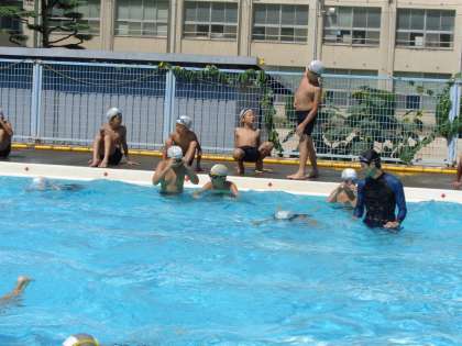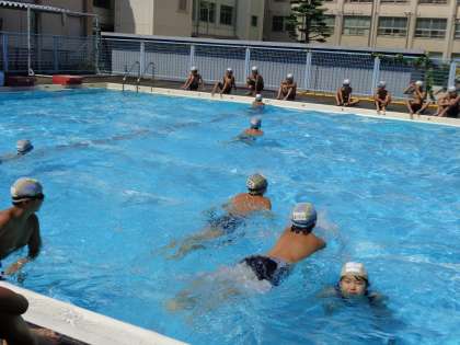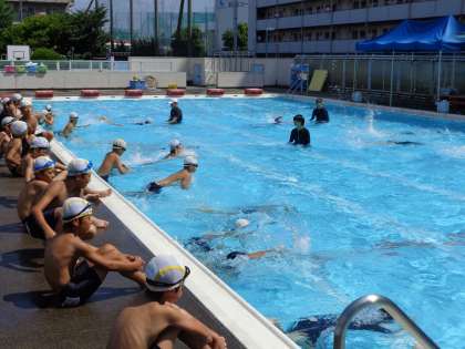 夏休みも4日目、子ども達も暑さに負けず、自分の時間をのびのびと過ごしていることと思います。今月30日まで続くプール開放も元気ハツラツの子ども達の様子が見られています。プールから上がる水しぶきがキラキラ輝いていました。