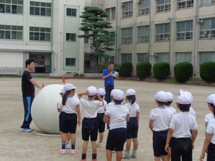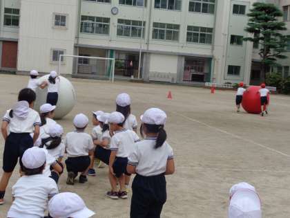 運動場から、ひときわ大きな歓声が聞こえました。様子を見てみると、2年生が団体競技の『大玉ころがし』を行っていました。しっかりと、流れを確認しながらも、本番さながらの真剣勝負になっていき、みんなの気持ちが爆発です。ぜひ、本番でもご注目を!