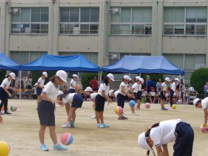 全員の子ども達がボールを持っての演技です。ボールを落としそうになりながらも、素晴らしいダンスでした。