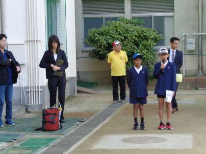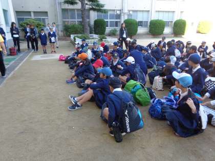 今日から6年生は修学旅行です。全員元気に登校し、出発式を行った後、広島県へ向けて出発しました。