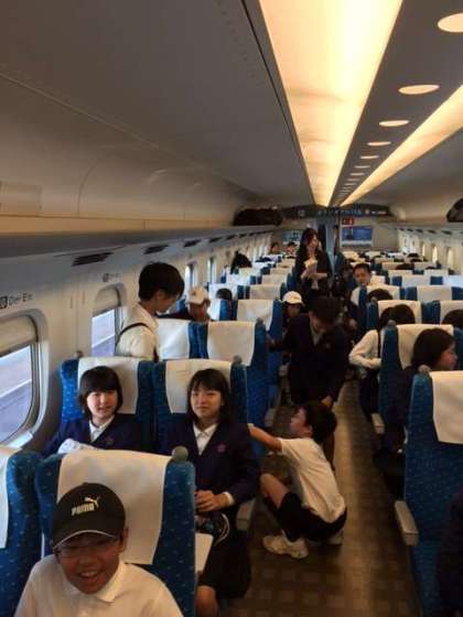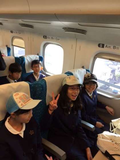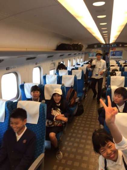 新大阪駅で、新幹線のぞみ号に乗車しました。みんなは希望と夢いっぱいです。