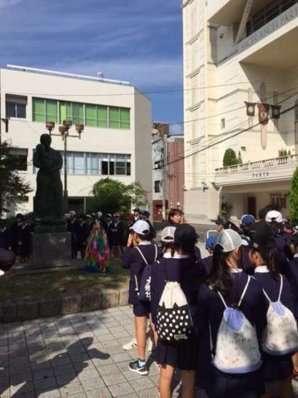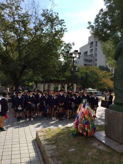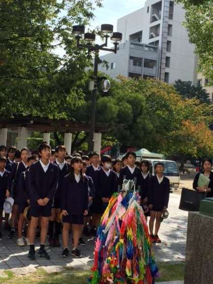 袋町公園の慰霊碑前です。全員で平和の誓いを捧げました。