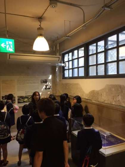 袋町小学校での被爆遺構の鑑賞の様子です。