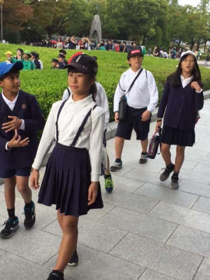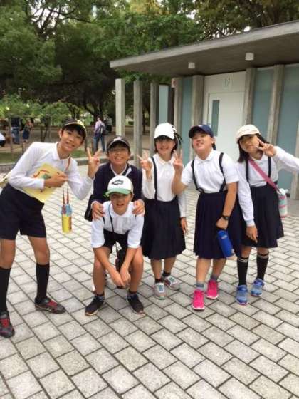 平和記念公園内をオリエンテーリング(碑めぐり)しています。