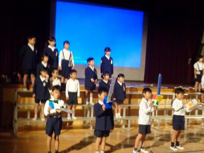 1年生は『できるようになったよ』をテーマに春から学習して、身に付けたことや体験したことを発表します。初めての大きな発表で1年生の子ども達は緊張しそうですが、どうか、この楽しく微笑ましい発表をご覧ください。