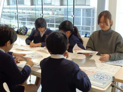 5年生は社会見学で「考える防災教室」として、大きな自然災害が起こり、ガスや電気、水などのライフラインが止まった時を乗りきるため、生活の工夫について学びました。家にある身の回りのものをうまく使って、トラブルを解決できる方法を予想して考えていきます。いつ災害が起こっても、自分たちの知恵と工夫で乗り切ることができることがわかりました。食器が割れても、紙食器が使えるよう自分たちで作ってみました。