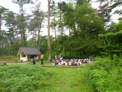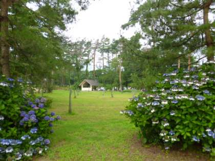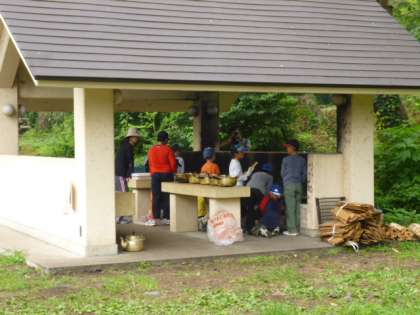 アジサイがたくさん咲いている神鍋山麓のキャンプ場でみんなでカレーづくりです。