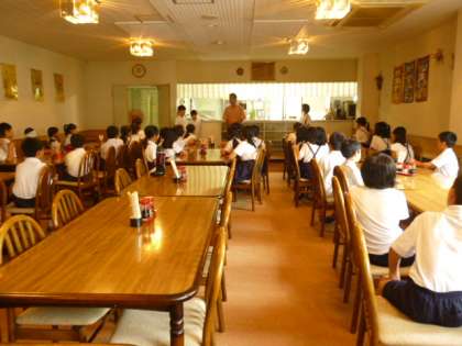 お昼の「炊き込みご飯」をいただき、いよいよ閉舎式。代表のあいさつの後、みんなでお礼を言いました。