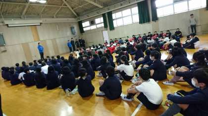 中学校への進学に対する不安を少なくする目的で小中交流交歓会が行われました。東三国中学校に本校と東三国小学校の6年生が集まり、中学生の先輩から、いろんな説明を受けたりクラブ体験をさせていただきました。地域で顔なじみのお兄さんやお姉さんもいて、中学生になるとやはり立派になるものだと実感しているようでした。