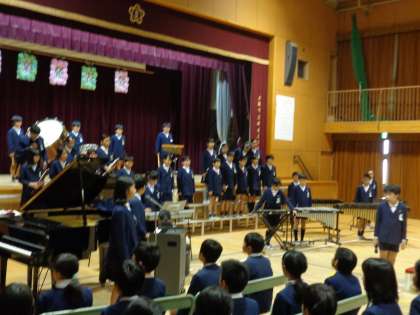 本日は参観授業がありましたが、5・6年生は音楽発表会を開催しました。みんな、この日までにご家族の方々に素晴らしい音楽を聴いていただこうと、歌や楽器の練習を重ねてきました。やや緊張もしましたが、みんな気持ちをしっかりと届いたようです。