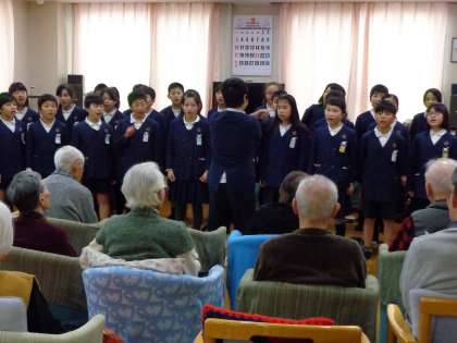 本日の5時間目、5年生が「デイサービスなみはや」を訪問させていただきました。優しそうなおじいちゃん、おばあちゃんと歌ったり、縦笛を聴いていただいたりしました。最後には、“茶摘み”などで、子ども達とおじいちゃん、おばあちゃん達が楽しく手を合わせながら一緒に遊びました。これからも同じ地域に住んでいるというだけでなく、一緒に話したり、遊んだりできるようになっていければいいなと願っています。