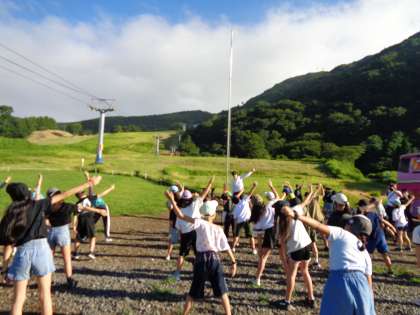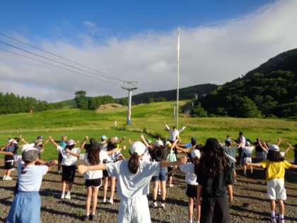 おはようございます。今日の天気は快晴で、気持ちのいい朝を迎えました。ラジオ体操をして、林間2日目のスタートです。