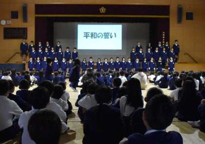 平和への願いや、平和学習を通して感じたこと、現在の広島の印象などを、全校のみんなに伝えました。
