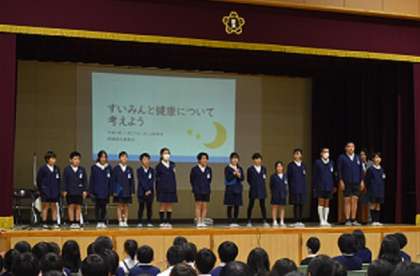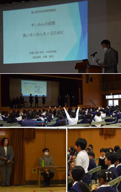 内科校医の伏見先生を講師にお迎えし、「すいみんと健康について考えよう」をテーマに、学校保健委員会を行いました。