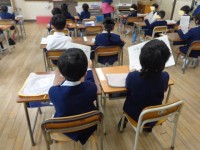 校長先生からのお話、生活指導の先生からのお話につづいて、最後にみんなで校歌を歌って、3学期がスタートしました。