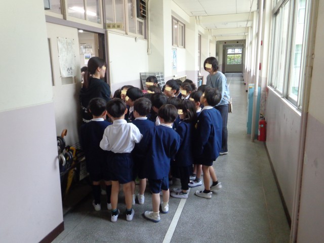 1年生の学校たんけんの様子です。いろんな教室を担任の先生から紹介してもらっています。職員室では、場所だけでなく、入室するときのマナーも勉強しました。「失礼します。1年〇組の~~です。」ちゃんと言えますか?早く言えるようになって、職員室のお仕事、お願いしますね。