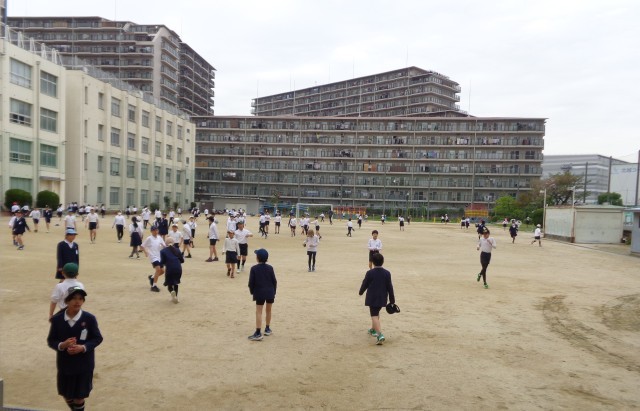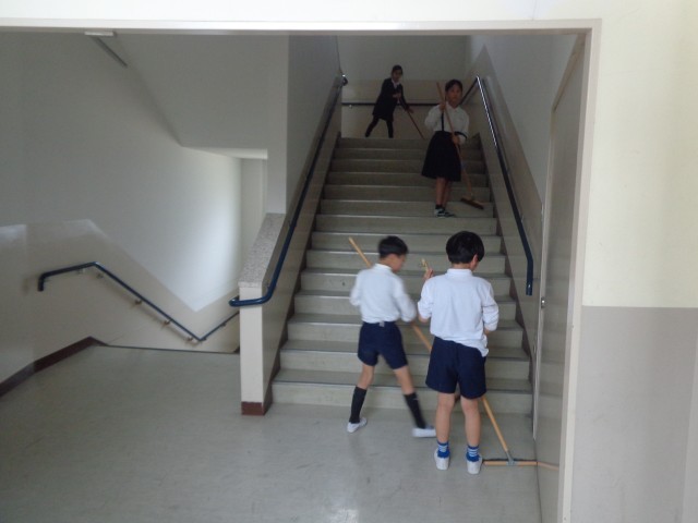 給食が終わり、たくさんの児童が元気に運動場で遊んでいます。教室で本を読んだり、お友達と過ごす児童もいます。昼休みが終わると清掃の時間です。みんな一生懸命清掃をしてくれています。
