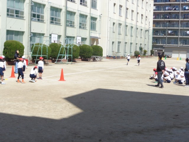 今日は昨日とは打って変わってとてもいい天気です。3年生の体育の授業の様子です。50m走を行っています。みんな一生懸命走っています。いい記録が出ましたか?