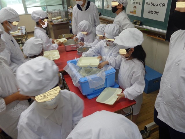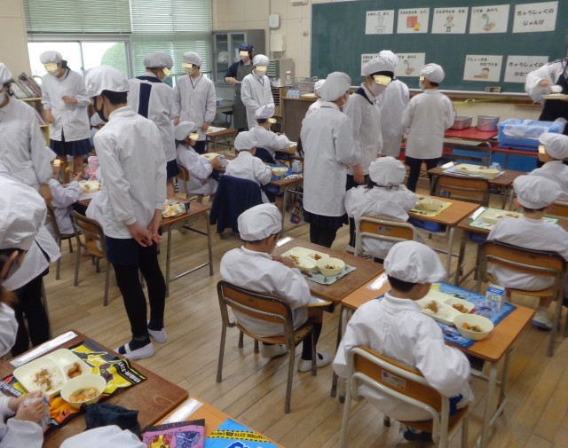 6年生の給食のお手伝いは最終日になります。これまで6年生に見守ってもらいながら給食の準備を行ってきました。もう自分たちでご飯やおかずをよそうことができるようになりました。いただきますをしてから、牛乳パックも自分たちで開けることができるようになりました。6年生のみなさん、ありがとうございました。一年生のみなさん、心をこめて「ありがとうございます」を言えましたか。