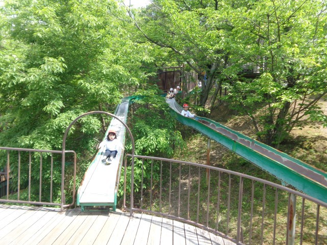 千里中央公園へ到着すると、とても大きな広場、そして何より、とても長いすべり台を見て、テンション爆上がり、でした。先生の諸注意を受けて、一目散!