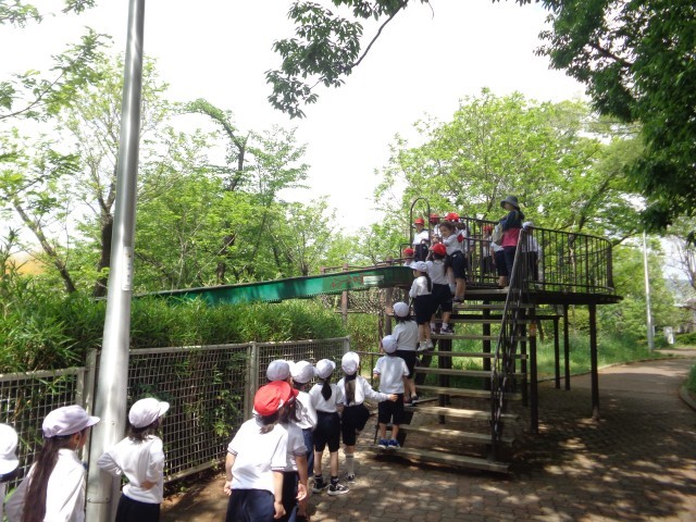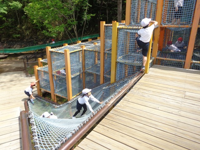 新東三国小学校が到着した時間帯は他の学校もおらず、貸し切り状態でした。すべり台だけでなく、アスレチックもあり、全力で楽しんでいます。11時半になると、「お弁当まだなん?」の声も聞こえてきました。お腹も空きますね。