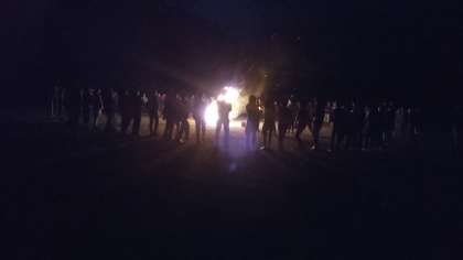 夕食後にキャンプファイヤーをしました。火の神から聖なる火をいただき、友情の火、団結の火、理想の火として、燃えろよ燃えろを歌い、ファイヤーの大きな火にしました。指導員パパラさんと一緒に火を囲み、楽しいひとときを過ごしました。