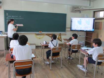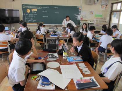 6年3組で算数の研究授業を行いました。習熟度別学習の形態で人数を少なくし、同じ課題を違うアプローチの仕方で深めていきました。