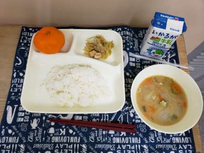 今日のメニューは、ピリ辛野菜いため、オクラとん汁、みかん(冷とう)、ごはん、牛乳です。夏バテをふきとばす野菜たっぷりとしたメニューです。平成30年度学校給食献立コンクールの優秀賞に選ばれた献立です。児童が書いた献立のねらいは「暑さに負けない健康な体をつくろう!」です。5年生、6年生のみなさんが対象です。コンクール献立に応募してみてはいかがですか。お子さんにお声かけください。