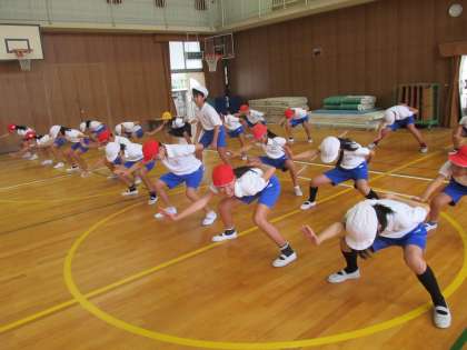 講堂では、学年ごとのダンス(表現運動)の練習が始まりました。5年生は、ソーラン節の振りつけを繰り返し練習して覚えていました。(写真上)