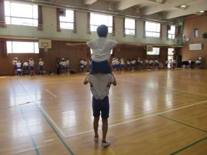 6年生は組体操の基本になる肩車やサボテンの技を練習していました。(写真中・下)