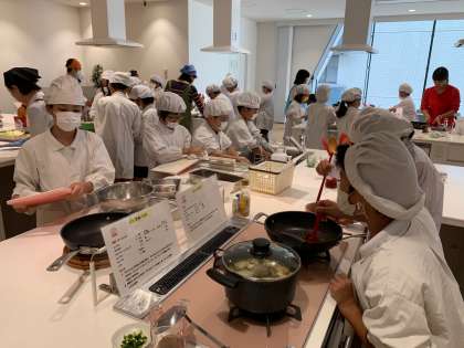 エコクッキングでは、鍋で炊くご飯、エコ・みそ汁、エコ・野菜いため、エコ・ふりかけを作りました。材料を無駄なく使うために野菜の切り方を工夫したり、無駄なエネルギーを使わないように材料を炒める順番を工夫したりしながら調理しました。環境にやさしい調理方法でとてもおいしいご飯を作ることができました。